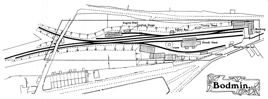 The ruling gradient on the line was 1 in 40 up from Bodmin Road and a similar gradient from Boscarne Junction, which restricted train weights due to small engines and brakes only on the locomotive and brake van.