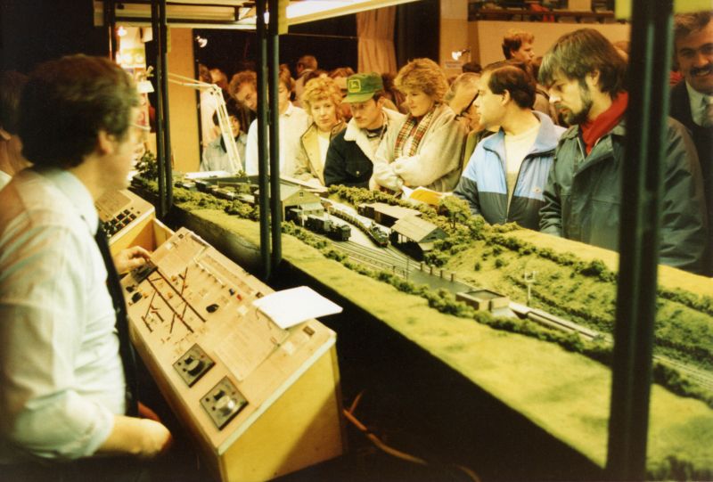 The layout is 21' long, plus there is normally a display table at the end making around 24' including access. Depth required at an exhibition is about 5' plus a table behind is preferable. For exhibition managers considering inviting the layout to their show the layout requires 6 operators (including relief staff) and takes about 3 hours to set up, so sadly it is impractical to attend one day shows.